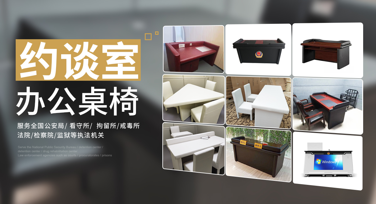審訊室桌椅系列、 法院家具系列、 約談桌椅系列、 民用家具系列、 約束床、 操作臺、